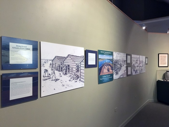 Each year, the Mount Independence Visitor Center has a special, seasonal exhibit. This year the feature is the fabulous illustrations of noted historical artist Gary Zaboly, created for Strong Ground: Mount Independence and the American Revolution. The illustrations are so detail-rich that they should be viewed in this large, exhibit-sized format. Stop by for a viewing.